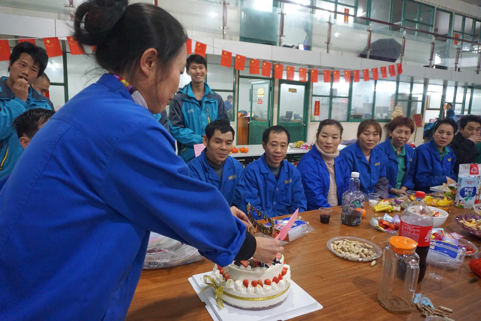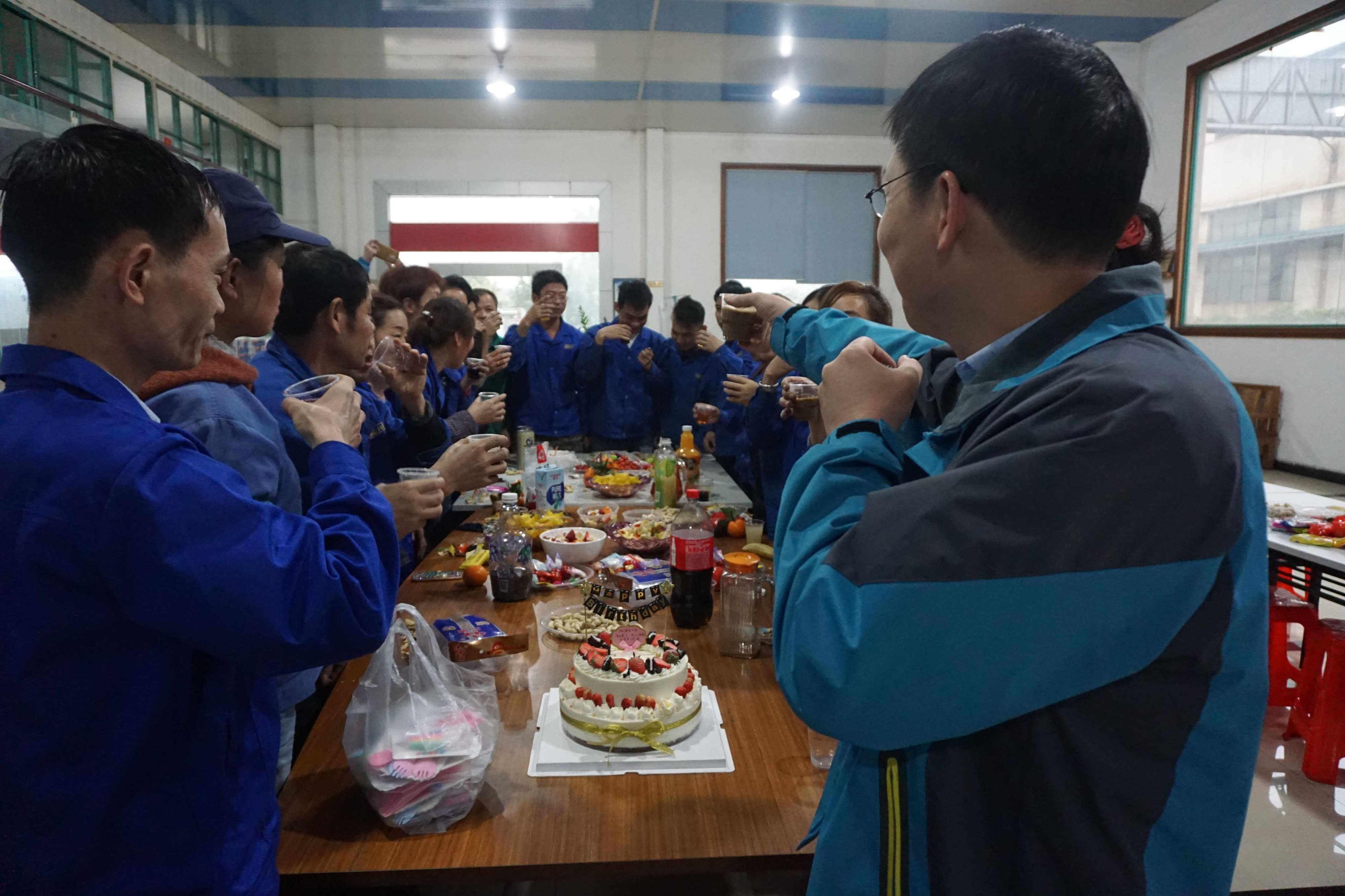 為了讓活動更熱鬧,我們同時組織2/3月份生日的員工進行生日會,下午16:00分,生日員工入座后由主持人黃文樂開場開始活動,上蛋糕,我們請出了財務(wù)部的財神英姐為我們點燃生日的蠟燭,開切蛋糕,分享蛋糕、唱起生日的贊歌,讓壽星們在歌聲中許下美好的愿望!在此送上我們最衷心的祝福!祝大家:生日快樂!緊接著是壽星們?yōu)榇蠹曳窒碓?/strong>2018年的生活中,最讓自己感動的一件事。最后我們?yōu)?/3月生日的員工派發(fā)生日禮物。